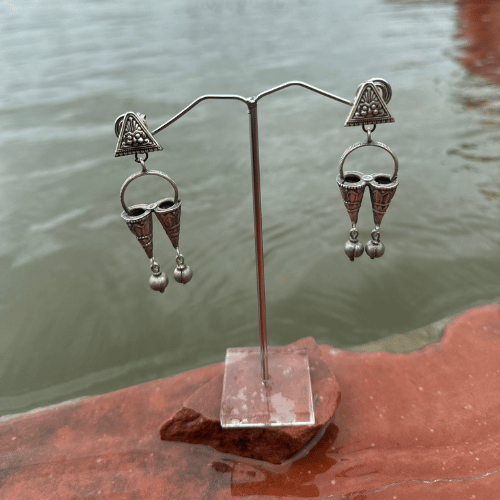 Weighing 20.81 grams, this intricately designed dangler blends triangle forms with vintage warrior accents, offering strength, heritage, and bold elegance.